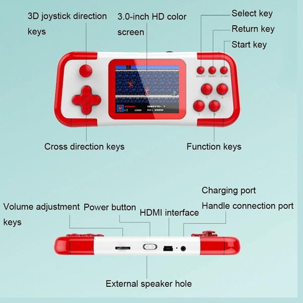 کنسول بازی دستی A12 دارای 66 بازی و 2 دسته می باشید. این کنسول دارای صفحه نمایش 3 اینچی می باشد و در صورت نیاز می توانید به تلوزیون وصل کنید و صفحه کنسول را روی صفحه نمایش تلویزیون داشته باشید.