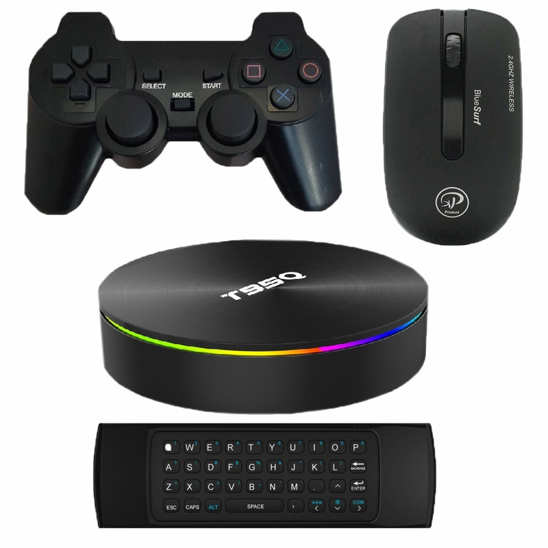 گیم باکس agbox-pro-03-c مشتمل بر یک اندروید باکس با حافظه داخلی 64 گیگ و رم 4 گیگ، یک دسته بازی بی سیم، یک ماوس بیسیم و یک ریموت ایر ماوس کیبورد دار است. سیستم از پردازنده قدرتمند s905X2 استفاده میکند که از بهترین پردازنده های میان رده اندروید باکس است. سه مجموعه بازی کامل و متنوع که مجموعا بیش از 50 بازی از پرطرفدارترین بازی های گوگل پلی مشتمل بر بازی های ورزشی مانند فوتبال در انواع سبک، بسکتبال وتنیس، مسابقات ماشین سواری در انواع سبک، بازی های تیراندازی (FPS) در انواع سبک، مبارزات شخصی، پلتفرم، انواع سبک بازی جهان باز و فکری و ... می باشد بر روی سیستم نصب است. تمامی بازی ها، با گرافیک بسیار خوب و اکثرا سه بعدی و از بازیهای مشترک اندروید، کنسولها و کامپیوتر هستند. برای هر سبک از بهترین بازیهای دیتا دار اندروید در آن سبک استفاده شده است که اکثرا افلاین هستند. همچنین مجموعه بازی های دیگر نیز برای سیستم در نظر گرفته شده که شما میتوانید به صورت جداگانه سفارش دهید و یا مانند کلیه محصولات سری agbox، بازی و نرم افزار دلخواه را از گوگل پلی، بازار و .. نصب کنید. علاوه بر بازیهای اندروید، شبیه ساز کنسول نوستالژیک سوپر نینتندو و مجموعه ای از بهترین بازی های آنها مانند سوپر ماریو، سونیک، مورتال کامبت و ... بر روی سیستم نصب است. مزیت پلتفرم اندروید نسبت به بقیه پلتفرم ها، تنوع بسیار بالای بازی ها است. به غیر از چند بازی محدود که با ماوس قابل انجام هستند، تمامی بازیها با دسته بازی قابل بازی هستند. راهنمای جامع سیستم و نحوه اجرای بازیها جهت اجرای روان با دسته را در کاتالوگ سیستم می توان یافت. در بازیها، منوهای انتخاب مراحل و تنظیمات اولیه با ماوس انجام شده و دسته بازی داخل محیط بازی فعال می گردد. همچنین پشتیبانی انلاین محصولات agbox می تواند راهنمای شما در نصب برنامه ها و استفاده شما از سیستم باشد. دستگاه دارای قابلیت اضافه کردن مموری جانبی و خروجی اپتیکال صدا نیز می باشد. دستگاه از طریق کابل HDMI به تلویزیون یا هر نمایشگر دیگر متصل می شود و با اتصال ماوس، دسته بیسیم یا کیبورد ایر ماوس از طریق دانگل های مربوط به پورتهای USB سیستم می توان بازیها و برنامه هایی که در حافظه نصب هستند را اجرا نمود و همچنین از سیستم برای وبگردی وتماشای فیلم انلاین و افلاین بهره برد.