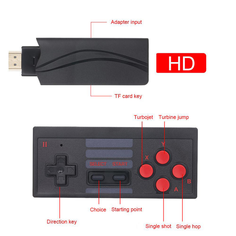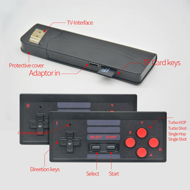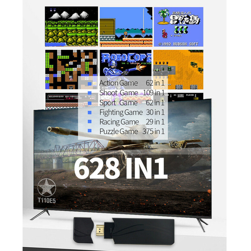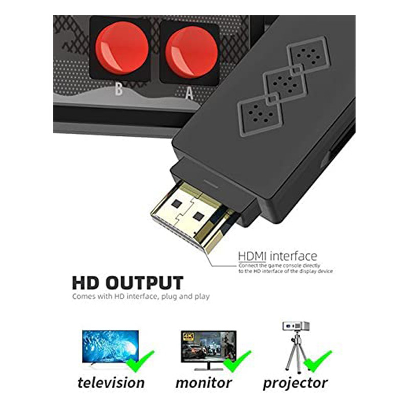 مینی کنسول مدل Extreme mini game box شامل 628 بازی کلاسیک از کنسولهای میکرو، نینتندو، سگا و... است که با کیفیت 4K در صفحه نمایش تلویزیون اجرا می شود. این دستگاه شامل دو دسته بازی بیسیم است و توسط یک رابط HDMI به تلویزیون های خانگی متصل میشود. دسته های بازی با دو باتری نیم قلمی کار می کنند.